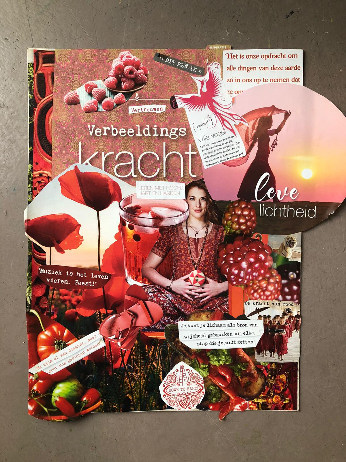 Daarna ga je intuïtief scheuren, knippen en plakken en maakt jouw Zielscollage.