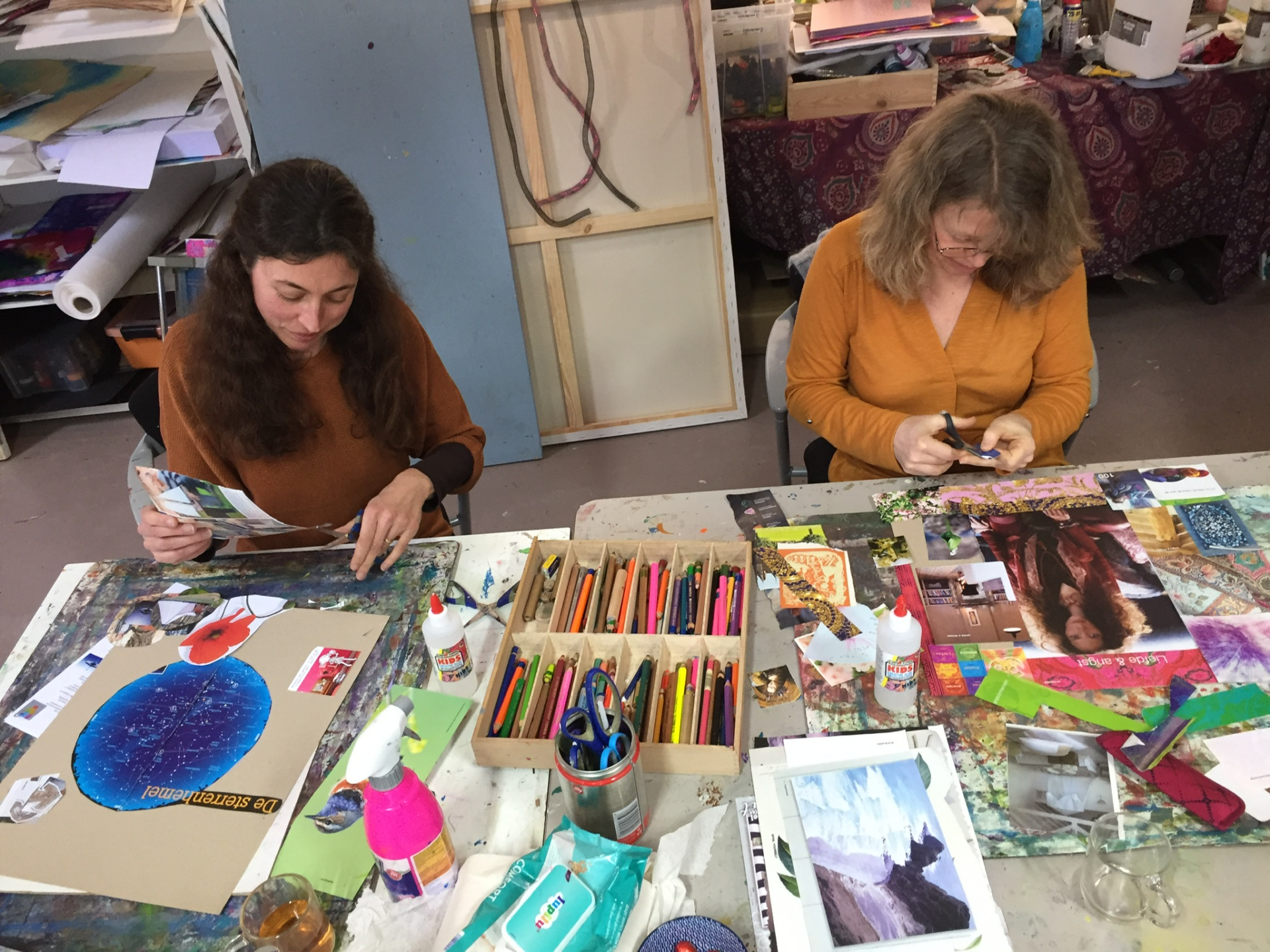 After that, you will intuitively tear, cut, and paste and create your Soul collage.